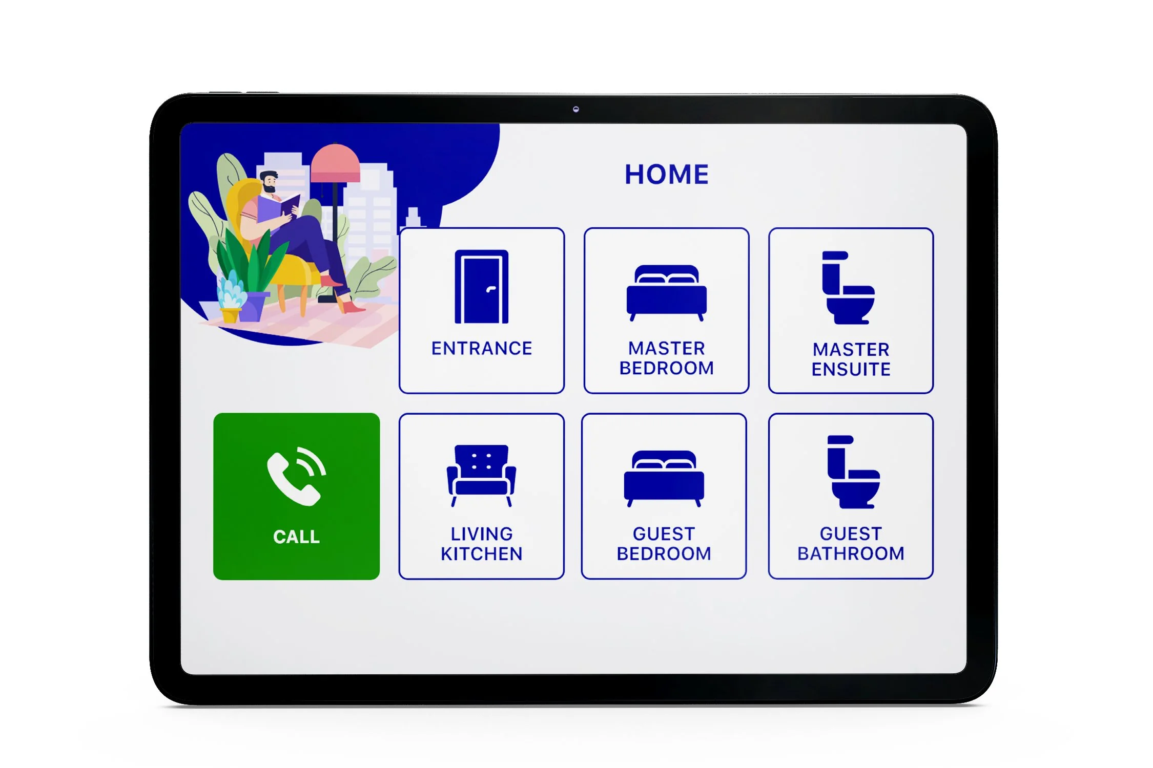 A commercial-grade 10" Android panel is utilised for the wall-mounted tablet in the kitchen/living area. The app can also be installed on tenant’s personal tablet, and there is also a mobile layout for their phone.